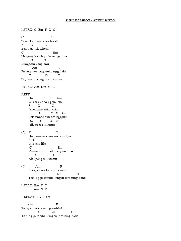 Didi Kempot Sewu Kuto Kunci Gitar By Tokey Tky Youtube from i.ytimg.com Maybe you would like to learn more about one of these? We did not find results for: Check spelling or type a new query.