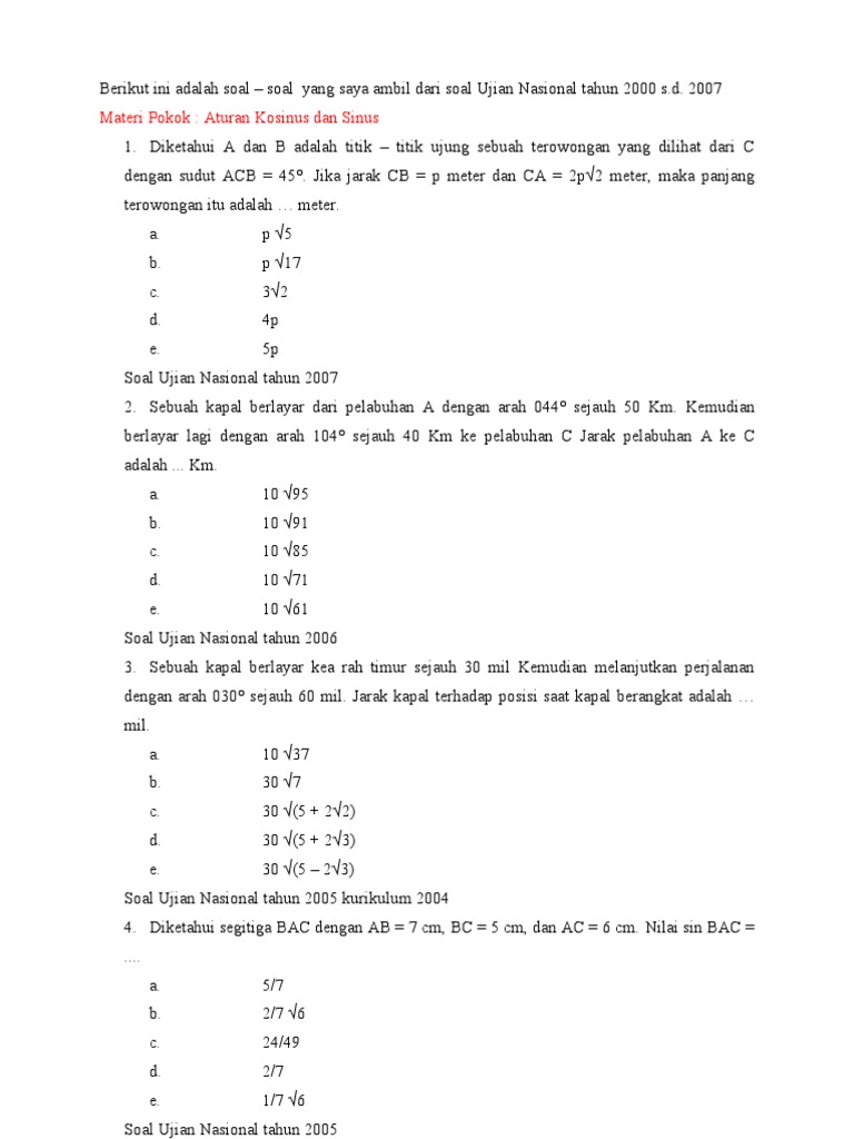 Soal Un Trigonometri 2019 - Latihan Soal Ujian Nasional Sma Matematika Ipa 2019 Dan Pembahasannya - Check spelling or type a new query.. Check spelling or type a new query. We did not find results for: Maybe you would like to learn more about one of these?